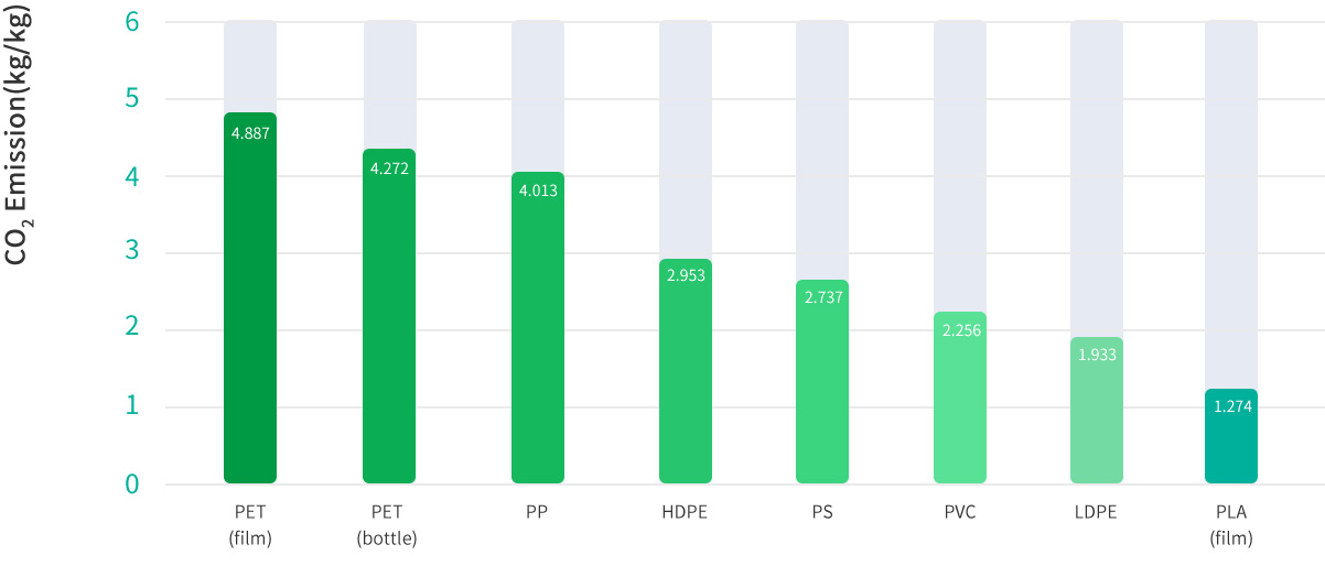 PLA與其他塑料碳足跡對比